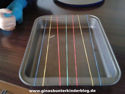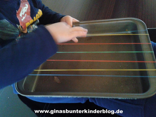Bespannt die Auflaufform mit unterschiedlichen Gummibändern und gebt sie dann den jung Musikern zum ausprobieren :)