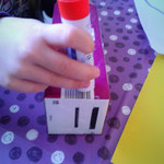 Streicht den Saftkarton auf allen Seiten mit Klebe ein.