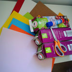 Nachdem Ihr die Saftkartons ausgespült habt und sie wieder trocken sind kann es los gehen.